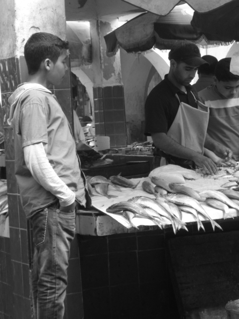 | Boy waiting, fish market Essaouira |